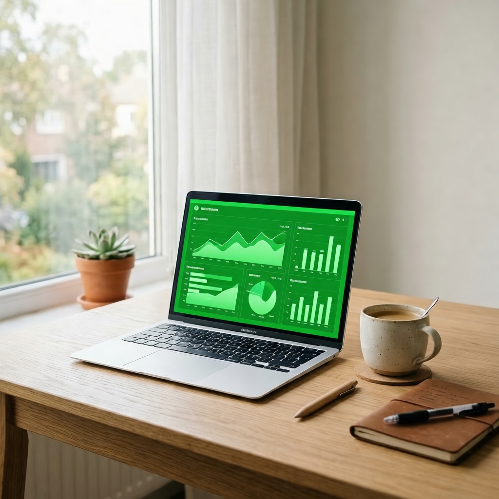 Change what appears on a laptop or monitor while the desk, cup, and lighting stay put.
